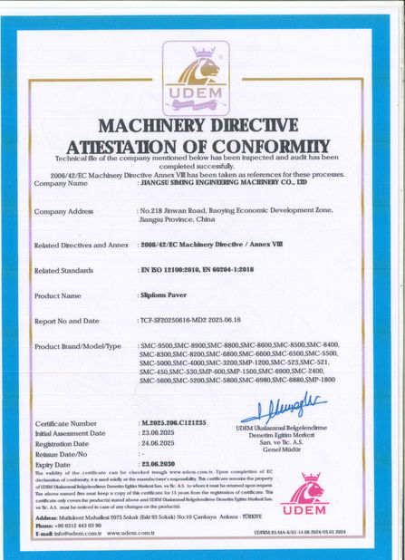 จีน Jiangsu Siming Engineering Machinery Co., Ltd. การรับรอง