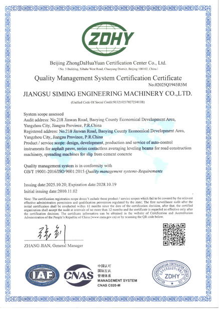 Jiangsu Siming Engineering Machinery Co., Ltd. การควบคุมคุณภาพ